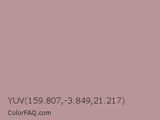 YUV 159.807,-3.849,21.217 Color is a light red color and the nearest color is Thatch #b69d98. Hex code #b89598 and RGB value is rgb(184,149,152). In RGB color space, this color is composed of 72% red, 58% green, 60% blue, In CMYK color space, this color is composed of 0% cyan, 19% magenta, 17% yellow , 28% black , In HSL color space, this color has a hue angle of 355° , 20% saturation and 65% lightness.