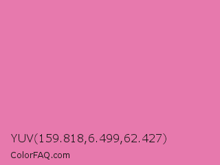 YUV 159.818,6.499,62.427 Color is a light rose color and the nearest color is Carissma #ea88a8. Hex code #e779ad and RGB value is rgb(231,121,173). In RGB color space, this color is composed of 91% red, 47% green, 68% blue, In CMYK color space, this color is composed of 0% cyan, 48% magenta, 25% yellow , 9% black , In HSL color space, this color has a hue angle of 332° , 70% saturation and 69% lightness.
