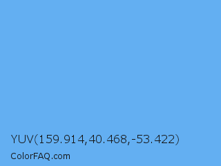 YUV 159.914,40.468,-53.422 Color is a light blue color and the nearest color is Blue Jeans #5dadec. Hex code #63aff2 and RGB value is rgb(99,175,242). In RGB color space, this color is composed of 39% red, 69% green, 95% blue, In CMYK color space, this color is composed of 59% cyan, 28% magenta, 0% yellow , 5% black , In HSL color space, this color has a hue angle of 208° , 85% saturation and 67% lightness.