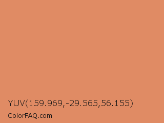 YUV 159.969,-29.565,56.155 Color is a light orange color and the nearest color is Copperfield #da8a67. Hex code #e08b64 and RGB value is rgb(224,139,100). In RGB color space, this color is composed of 88% red, 55% green, 39% blue, In CMYK color space, this color is composed of 0% cyan, 38% magenta, 55% yellow , 12% black , In HSL color space, this color has a hue angle of 19° , 67% saturation and 64% lightness.