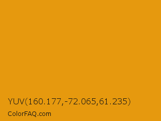 YUV 160.177,-72.065,61.235 Color is a normal orange color and the nearest color is Gamboge #e49b0f. Hex code #e6990e and RGB value is rgb(230,153,14). In RGB color space, this color is composed of 90% red, 60% green, 5% blue, In CMYK color space, this color is composed of 0% cyan, 33% magenta, 94% yellow , 10% black , In HSL color space, this color has a hue angle of 39° , 89% saturation and 48% lightness.
