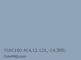 YUV 160.414,12.121,-14.395 Color is a light blue color and the nearest color is Pewter Blue #8ba8b7. Hex code #90a4b9 and RGB value is rgb(144,164,185). In RGB color space, this color is composed of 56% red, 64% green, 73% blue, In CMYK color space, this color is composed of 22% cyan, 11% magenta, 0% yellow , 27% black , In HSL color space, this color has a hue angle of 211° , 23% saturation and 65% lightness.
