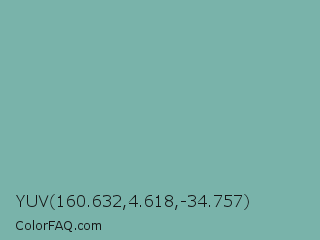YUV 160.632,4.618,-34.757 Color is a normal cyan color and the nearest color is Gulf Stream #80b3ae. Hex code #79b3aa and RGB value is rgb(121,179,170). In RGB color space, this color is composed of 47% red, 70% green, 67% blue, In CMYK color space, this color is composed of 32% cyan, 0% magenta, 5% yellow , 30% black , In HSL color space, this color has a hue angle of 171° , 28% saturation and 59% lightness.
