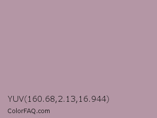 YUV 160.68,2.13,16.944 Color is a light rose color and the nearest color is Lilac Luster #ae98aa. Hex code #b496a5 and RGB value is rgb(180,150,165). In RGB color space, this color is composed of 71% red, 59% green, 65% blue, In CMYK color space, this color is composed of 0% cyan, 17% magenta, 8% yellow , 29% black , In HSL color space, this color has a hue angle of 330° , 17% saturation and 65% lightness.