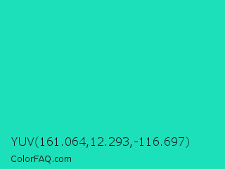 YUV 161.064,12.293,-116.697 Color is a normal cyan color and the nearest color is Turquoise PWG #30d5c8. Hex code #1ce0ba and RGB value is rgb(28,224,186). In RGB color space, this color is composed of 11% red, 88% green, 73% blue, In CMYK color space, this color is composed of 88% cyan, 0% magenta, 17% yellow , 12% black , In HSL color space, this color has a hue angle of 168° , 78% saturation and 49% lightness.