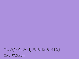 YUV 161.264,29.943,9.415 Color is a light violet color and the nearest color is Dull Lavender #a899e6. Hex code #ac90de and RGB value is rgb(172,144,222). In RGB color space, this color is composed of 67% red, 56% green, 87% blue, In CMYK color space, this color is composed of 23% cyan, 35% magenta, 0% yellow , 13% black , In HSL color space, this color has a hue angle of 262° , 54% saturation and 72% lightness.