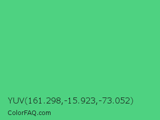 YUV 161.298,-15.923,-73.052 Color is a normal green color and the nearest color is Emerald #50c878. Hex code #4ed281 and RGB value is rgb(78,210,129). In RGB color space, this color is composed of 31% red, 82% green, 51% blue, In CMYK color space, this color is composed of 63% cyan, 0% magenta, 39% yellow , 18% black , In HSL color space, this color has a hue angle of 143° , 59% saturation and 56% lightness.