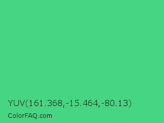 YUV 161.368,-15.464,-80.13 Color is a normal green color and the nearest color is Emerald #50c878. Hex code #46d682 and RGB value is rgb(70,214,130). In RGB color space, this color is composed of 27% red, 84% green, 51% blue, In CMYK color space, this color is composed of 67% cyan, 0% magenta, 39% yellow , 16% black , In HSL color space, this color has a hue angle of 145° , 64% saturation and 56% lightness.