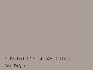 YUV 161.616,-4.248,9.107 Color is a light orange color and the nearest color is Bronco #aba196. Hex code #ac9e99 and RGB value is rgb(172,158,153). In RGB color space, this color is composed of 67% red, 62% green, 60% blue, In CMYK color space, this color is composed of 0% cyan, 8% magenta, 11% yellow , 33% black , In HSL color space, this color has a hue angle of 16° , 10% saturation and 64% lightness.
