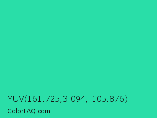 YUV 161.725,3.094,-105.876 Color is a normal green color and the nearest color is Shamrock #33cc99. Hex code #29dea8 and RGB value is rgb(41,222,168). In RGB color space, this color is composed of 16% red, 87% green, 66% blue, In CMYK color space, this color is composed of 82% cyan, 0% magenta, 24% yellow , 13% black , In HSL color space, this color has a hue angle of 162° , 73% saturation and 52% lightness.