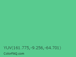YUV 161.775,-9.256,-64.701 Color is a normal green color and the nearest color is Ocean Green #48bf91. Hex code #58cb8f and RGB value is rgb(88,203,143). In RGB color space, this color is composed of 35% red, 80% green, 56% blue, In CMYK color space, this color is composed of 57% cyan, 0% magenta, 30% yellow , 20% black , In HSL color space, this color has a hue angle of 149° , 53% saturation and 57% lightness.
