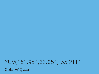 YUV 161.954,33.054,-55.211 Color is a light blue color and the nearest color is Blue Jeans #5dadec. Hex code #63b5e5 and RGB value is rgb(99,181,229). In RGB color space, this color is composed of 39% red, 71% green, 90% blue, In CMYK color space, this color is composed of 57% cyan, 21% magenta, 0% yellow , 10% black , In HSL color space, this color has a hue angle of 202° , 71% saturation and 64% lightness.