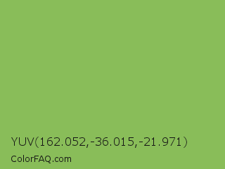 YUV 162.052,-36.015,-21.971 Color is a normal green color and the nearest color is Dollar Bill #85bb65. Hex code #89bd59 and RGB value is rgb(137,189,89). In RGB color space, this color is composed of 54% red, 74% green, 35% blue, In CMYK color space, this color is composed of 28% cyan, 0% magenta, 53% yellow , 26% black , In HSL color space, this color has a hue angle of 91° , 43% saturation and 55% lightness.