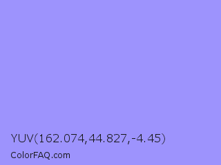 YUV 162.074,44.827,-4.45 Color is a light indigo color and the nearest color is Dull Lavender #a899e6. Hex code #9d93fd and RGB value is rgb(157,147,253). In RGB color space, this color is composed of 62% red, 58% green, 99% blue, In CMYK color space, this color is composed of 38% cyan, 42% magenta, 0% yellow , 1% black , In HSL color space, this color has a hue angle of 246° , 96% saturation and 78% lightness.