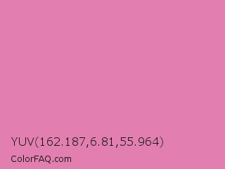 YUV 162.187,6.81,55.964 Color is a light rose color and the nearest color is Middle Purple #d982b5. Hex code #e27fb0 and RGB value is rgb(226,127,176). In RGB color space, this color is composed of 89% red, 50% green, 69% blue, In CMYK color space, this color is composed of 0% cyan, 44% magenta, 22% yellow , 11% black , In HSL color space, this color has a hue angle of 330° , 63% saturation and 69% lightness.