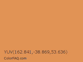 YUV 162.841,-38.869,53.636 Color is a normal orange color and the nearest color is Persian Orange #d99058. Hex code #e09354 and RGB value is rgb(224,147,84). In RGB color space, this color is composed of 88% red, 58% green, 33% blue, In CMYK color space, this color is composed of 0% cyan, 34% magenta, 63% yellow , 12% black , In HSL color space, this color has a hue angle of 27° , 69% saturation and 60% lightness.