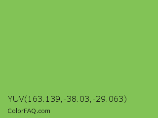 YUV 163.139,-38.03,-29.063 Color is a normal green color and the nearest color is Dollar Bill #85bb65. Hex code #82c356 and RGB value is rgb(130,195,86). In RGB color space, this color is composed of 51% red, 76% green, 34% blue, In CMYK color space, this color is composed of 33% cyan, 0% magenta, 56% yellow , 24% black , In HSL color space, this color has a hue angle of 96° , 48% saturation and 55% lightness.