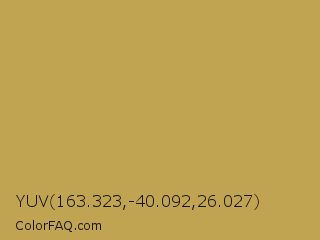 YUV 163.323,-40.092,26.027 Color is a normal orange color and the nearest color is Roti #c6a84b. Hex code #c1a452 and RGB value is rgb(193,164,82). In RGB color space, this color is composed of 76% red, 64% green, 32% blue, In CMYK color space, this color is composed of 0% cyan, 15% magenta, 58% yellow , 24% black , In HSL color space, this color has a hue angle of 44° , 47% saturation and 54% lightness.