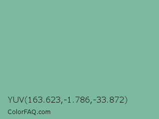 YUV 163.623,-1.786,-33.872 Color is a light green color and the nearest color is Acapulco #7cb0a1. Hex code #7db8a0 and RGB value is rgb(125,184,160). In RGB color space, this color is composed of 49% red, 72% green, 63% blue, In CMYK color space, this color is composed of 32% cyan, 0% magenta, 13% yellow , 28% black , In HSL color space, this color has a hue angle of 156° , 29% saturation and 61% lightness.