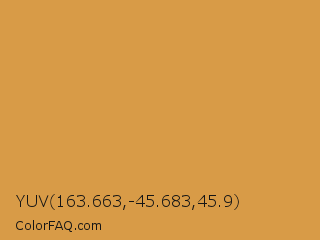YUV 163.663,-45.683,45.9 Color is a normal orange color and the nearest color is Tussock #c5994b. Hex code #d89b47 and RGB value is rgb(216,155,71). In RGB color space, this color is composed of 85% red, 61% green, 28% blue, In CMYK color space, this color is composed of 0% cyan, 28% magenta, 67% yellow , 15% black , In HSL color space, this color has a hue angle of 35° , 65% saturation and 56% lightness.