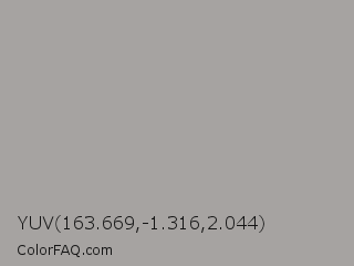 YUV 163.669,-1.316,2.044 Color is a light orange color and the nearest color is Delta #a4a49d. Hex code #a6a3a1 and RGB value is rgb(166,163,161). In RGB color space, this color is composed of 65% red, 64% green, 63% blue, In CMYK color space, this color is composed of 0% cyan, 2% magenta, 3% yellow , 35% black , In HSL color space, this color has a hue angle of 24° , 3% saturation and 64% lightness.
