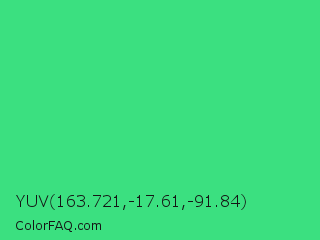 YUV 163.721,-17.61,-91.84 Color is a normal green color and the nearest color is UFO Green #3cd070. Hex code #3be080 and RGB value is rgb(59,224,128). In RGB color space, this color is composed of 23% red, 88% green, 50% blue, In CMYK color space, this color is composed of 74% cyan, 0% magenta, 43% yellow , 12% black , In HSL color space, this color has a hue angle of 145° , 73% saturation and 55% lightness.