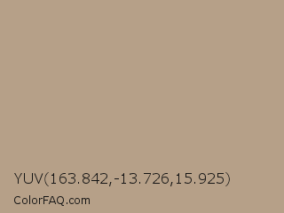YUV 163.842,-13.726,15.925 Color is a light orange color and the nearest color is Mongoose #b5a27f. Hex code #b6a088 and RGB value is rgb(182,160,136). In RGB color space, this color is composed of 71% red, 63% green, 53% blue, In CMYK color space, this color is composed of 0% cyan, 12% magenta, 25% yellow , 29% black , In HSL color space, this color has a hue angle of 31° , 24% saturation and 62% lightness.