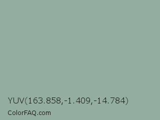 YUV 163.858,-1.409,-14.784 Color is a light green color and the nearest color is Pewter #96a8a1. Hex code #93ada1 and RGB value is rgb(147,173,161). In RGB color space, this color is composed of 58% red, 68% green, 63% blue, In CMYK color space, this color is composed of 15% cyan, 0% magenta, 7% yellow , 32% black , In HSL color space, this color has a hue angle of 152° , 14% saturation and 63% lightness.