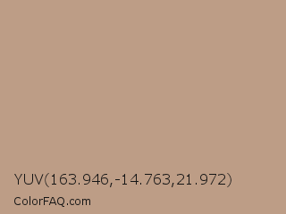 YUV 163.946,-14.763,21.972 Color is a light orange color and the nearest color is Pale Taupe #bc987e. Hex code #bd9d86 and RGB value is rgb(189,157,134). In RGB color space, this color is composed of 74% red, 62% green, 53% blue, In CMYK color space, this color is composed of 0% cyan, 17% magenta, 29% yellow , 26% black , In HSL color space, this color has a hue angle of 25° , 29% saturation and 63% lightness.