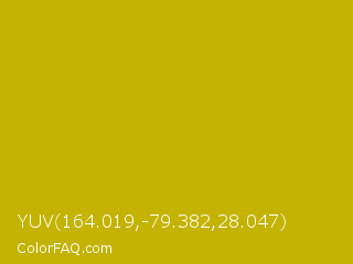 YUV 164.019,-79.382,28.047 Color is a normal yellow color and the nearest color is Buddha Gold #c1a004. Hex code #c4b303 and RGB value is rgb(196,179,3). In RGB color space, this color is composed of 77% red, 70% green, 1% blue, In CMYK color space, this color is composed of 0% cyan, 9% magenta, 98% yellow , 23% black , In HSL color space, this color has a hue angle of 55° , 97% saturation and 39% lightness.