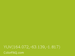 YUV 164.072,-63.139,-1.817 Color is a normal lime color and the nearest color is Acid Green #b0bf1a. Hex code #a2be24 and RGB value is rgb(162,190,36). In RGB color space, this color is composed of 64% red, 75% green, 14% blue, In CMYK color space, this color is composed of 15% cyan, 0% magenta, 81% yellow , 25% black , In HSL color space, this color has a hue angle of 71° , 68% saturation and 44% lightness.