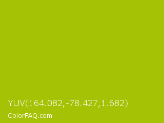 YUV 164.082,-78.427,1.682 Color is a normal yellow color and the nearest color is Citrus #a1c50a. Hex code #a6c205 and RGB value is rgb(166,194,5). In RGB color space, this color is composed of 65% red, 76% green, 2% blue, In CMYK color space, this color is composed of 14% cyan, 0% magenta, 97% yellow , 24% black , In HSL color space, this color has a hue angle of 69° , 95% saturation and 39% lightness.