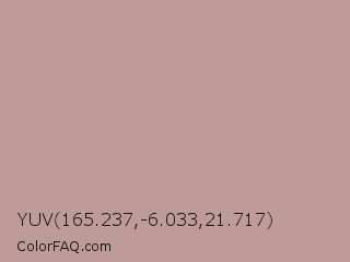 YUV 165.237,-6.033,21.717 Color is a light red color and the nearest color is Tuscany #c09999. Hex code #be9b99 and RGB value is rgb(190,155,153). In RGB color space, this color is composed of 75% red, 61% green, 60% blue, In CMYK color space, this color is composed of 0% cyan, 18% magenta, 19% yellow , 25% black , In HSL color space, this color has a hue angle of 3° , 22% saturation and 67% lightness.