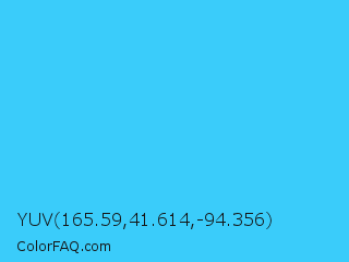YUV 165.59,41.614,-94.356 Color is a normal blue color and the nearest color is Picton Blue #45b1e8. Hex code #3accfa and RGB value is rgb(58,204,250). In RGB color space, this color is composed of 23% red, 80% green, 98% blue, In CMYK color space, this color is composed of 77% cyan, 18% magenta, 0% yellow , 2% black , In HSL color space, this color has a hue angle of 194° , 95% saturation and 60% lightness.