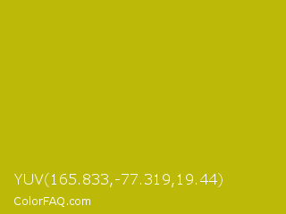 YUV 165.833,-77.319,19.44 Color is a normal yellow color and the nearest color is La Rioja #b3c110. Hex code #bcb909 and RGB value is rgb(188,185,9). In RGB color space, this color is composed of 74% red, 73% green, 4% blue, In CMYK color space, this color is composed of 0% cyan, 2% magenta, 95% yellow , 26% black , In HSL color space, this color has a hue angle of 59° , 91% saturation and 39% lightness.