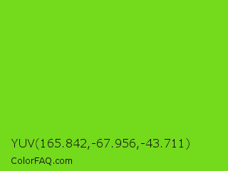 YUV 165.842,-67.956,-43.711 Color is a normal green color and the nearest color is Lima #76bd17. Hex code #74da1c and RGB value is rgb(116,218,28). In RGB color space, this color is composed of 45% red, 85% green, 11% blue, In CMYK color space, this color is composed of 47% cyan, 0% magenta, 87% yellow , 15% black , In HSL color space, this color has a hue angle of 92° , 77% saturation and 48% lightness.