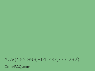 YUV 165.893,-14.737,-33.232 Color is a light green color and the nearest color is De York #7ac488. Hex code #80bf88 and RGB value is rgb(128,191,136). In RGB color space, this color is composed of 50% red, 75% green, 53% blue, In CMYK color space, this color is composed of 33% cyan, 0% magenta, 29% yellow , 25% black , In HSL color space, this color has a hue angle of 128° , 33% saturation and 63% lightness.