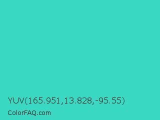 YUV 165.951,13.828,-95.55 Color is a normal cyan color and the nearest color is Turquoise PWG #30d5c8. Hex code #39d8c2 and RGB value is rgb(57,216,194). In RGB color space, this color is composed of 22% red, 85% green, 76% blue, In CMYK color space, this color is composed of 74% cyan, 0% magenta, 10% yellow , 15% black , In HSL color space, this color has a hue angle of 172° , 67% saturation and 54% lightness.