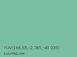YUV 166.65,-2.785,-40.035 Color is a light green color and the nearest color is Acapulco #7cb0a1. Hex code #79bfa1 and RGB value is rgb(121,191,161). In RGB color space, this color is composed of 47% red, 75% green, 63% blue, In CMYK color space, this color is composed of 37% cyan, 0% magenta, 16% yellow , 25% black , In HSL color space, this color has a hue angle of 154° , 35% saturation and 61% lightness.