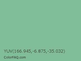 YUV 166.945,-6.875,-35.032 Color is a light green color and the nearest color is Acapulco #7cb0a1. Hex code #7fbe99 and RGB value is rgb(127,190,153). In RGB color space, this color is composed of 50% red, 75% green, 60% blue, In CMYK color space, this color is composed of 33% cyan, 0% magenta, 19% yellow , 25% black , In HSL color space, this color has a hue angle of 145° , 33% saturation and 62% lightness.