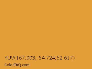 YUV 167.003,-54.724,52.617 Color is a normal orange color and the nearest color is Fire Bush #e89928. Hex code #e39e38 and RGB value is rgb(227,158,56). In RGB color space, this color is composed of 89% red, 62% green, 22% blue, In CMYK color space, this color is composed of 0% cyan, 30% magenta, 75% yellow , 11% black , In HSL color space, this color has a hue angle of 36° , 75% saturation and 55% lightness.