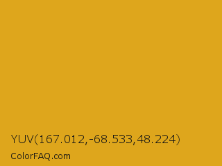 YUV 167.012,-68.533,48.224 Color is a normal orange color and the nearest color is Golden Grass #daa520. Hex code #dea61c and RGB value is rgb(222,166,28). In RGB color space, this color is composed of 87% red, 65% green, 11% blue, In CMYK color space, this color is composed of 0% cyan, 25% magenta, 87% yellow , 13% black , In HSL color space, this color has a hue angle of 43° , 78% saturation and 49% lightness.