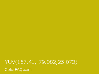 YUV 167.41,-79.082,25.073 Color is a normal yellow color and the nearest color is La Rioja #b3c110. Hex code #c4b807 and RGB value is rgb(196,184,7). In RGB color space, this color is composed of 77% red, 72% green, 3% blue, In CMYK color space, this color is composed of 0% cyan, 6% magenta, 96% yellow , 23% black , In HSL color space, this color has a hue angle of 56° , 93% saturation and 40% lightness.