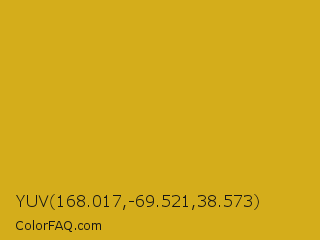 YUV 168.017,-69.521,38.573 Color is a normal yellow color and the nearest color is Golden Grass #daa520. Hex code #d4ad1b and RGB value is rgb(212,173,27). In RGB color space, this color is composed of 83% red, 68% green, 11% blue, In CMYK color space, this color is composed of 0% cyan, 18% magenta, 87% yellow , 17% black , In HSL color space, this color has a hue angle of 47° , 77% saturation and 47% lightness.
