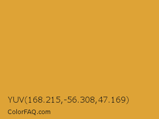 YUV 168.215,-56.308,47.169 Color is a normal orange color and the nearest color is Gold Metallic #d4af37. Hex code #dea336 and RGB value is rgb(222,163,54). In RGB color space, this color is composed of 87% red, 64% green, 21% blue, In CMYK color space, this color is composed of 0% cyan, 27% magenta, 76% yellow , 13% black , In HSL color space, this color has a hue angle of 39° , 72% saturation and 54% lightness.