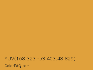 YUV 168.323,-53.403,48.829 Color is a normal orange color and the nearest color is Gold Metallic #d4af37. Hex code #e0a13c and RGB value is rgb(224,161,60). In RGB color space, this color is composed of 88% red, 63% green, 24% blue, In CMYK color space, this color is composed of 0% cyan, 28% magenta, 73% yellow , 12% black , In HSL color space, this color has a hue angle of 37° , 73% saturation and 56% lightness.