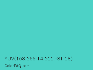 YUV 168.566,14.511,-81.18 Color is a normal cyan color and the nearest color is Medium Turquoise #48d1cc. Hex code #4cd2c6 and RGB value is rgb(76,210,198). In RGB color space, this color is composed of 30% red, 82% green, 78% blue, In CMYK color space, this color is composed of 64% cyan, 0% magenta, 6% yellow , 18% black , In HSL color space, this color has a hue angle of 175° , 60% saturation and 56% lightness.