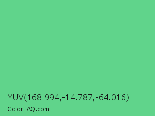 YUV 168.994,-14.787,-64.016 Color is a normal green color and the nearest color is Very Light Malachite Green #64e986. Hex code #60d48b and RGB value is rgb(96,212,139). In RGB color space, this color is composed of 38% red, 83% green, 55% blue, In CMYK color space, this color is composed of 55% cyan, 0% magenta, 34% yellow , 17% black , In HSL color space, this color has a hue angle of 142° , 57% saturation and 60% lightness.