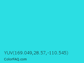 YUV 169.049,28.57,-110.545 Color is a normal cyan color and the nearest color is Turquoise #40e0d0. Hex code #2bdee3 and RGB value is rgb(43,222,227). In RGB color space, this color is composed of 17% red, 87% green, 89% blue, In CMYK color space, this color is composed of 81% cyan, 2% magenta, 0% yellow , 11% black , In HSL color space, this color has a hue angle of 182° , 77% saturation and 53% lightness.