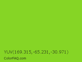 YUV 169.315,-65.231,-30.971 Color is a normal green color and the nearest color is Atlantis #97cd2d. Hex code #86d525 and RGB value is rgb(134,213,37). In RGB color space, this color is composed of 53% red, 84% green, 15% blue, In CMYK color space, this color is composed of 37% cyan, 0% magenta, 83% yellow , 16% black , In HSL color space, this color has a hue angle of 87° , 70% saturation and 49% lightness.